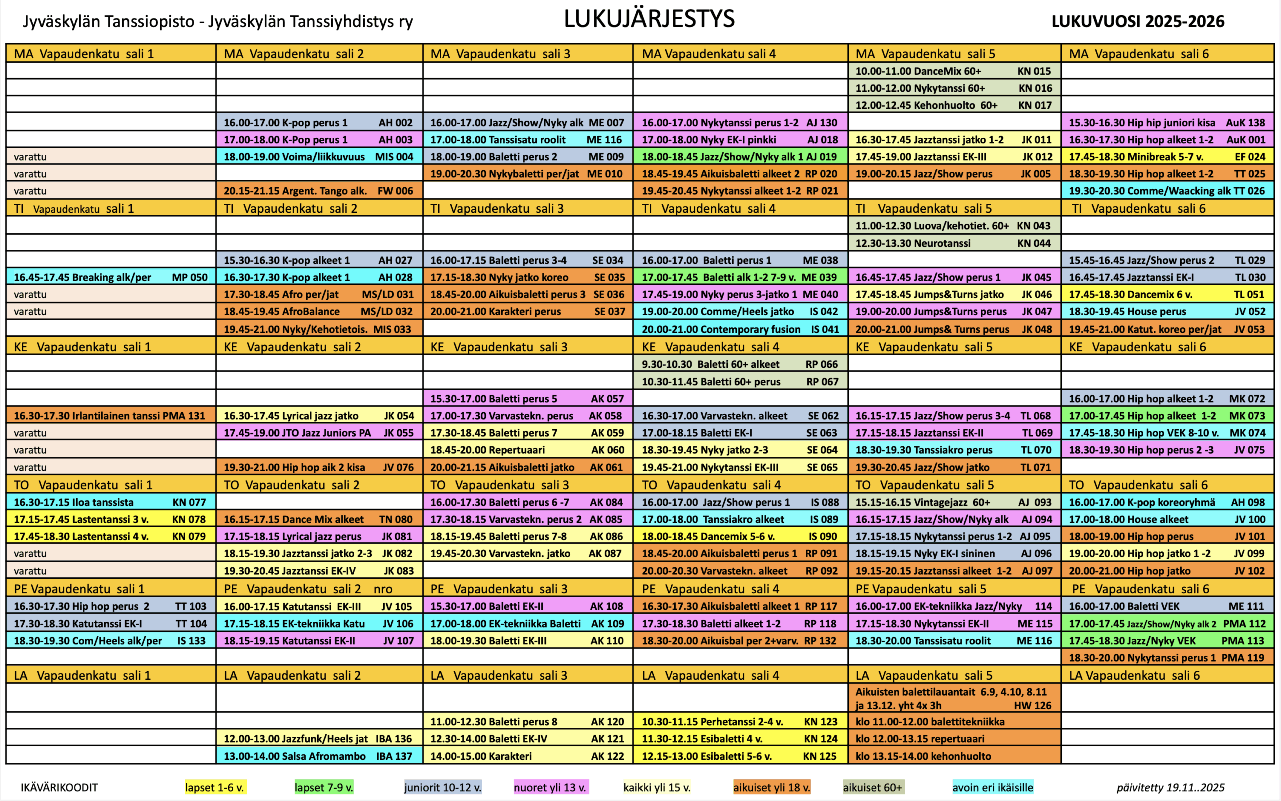 17.45-18.30 Jazz/Nykytanssi VEK Piia-Maria Aho 113 Sali 6